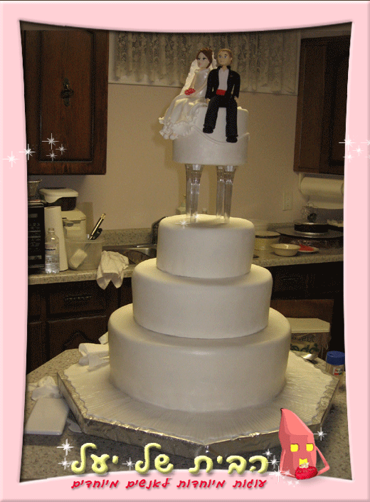 בגלל שההכנות היו בקנדה ולא רציתי להתעסק ולעשות ניסיונות עם הכנת העוגה עצמה אז מצאתי בחורה נחמדה מאוד בטורונטו שעובדת גם היא בעיצוב עוגות והיא אפתה בישבילי את העוגות לפי הדרישות שלי.. והיה לה קשה לקבל את הדרישות כי היא טוענת שהיא מעולם לא הכינה ולא מכרה עוגות גדולות כל כך...